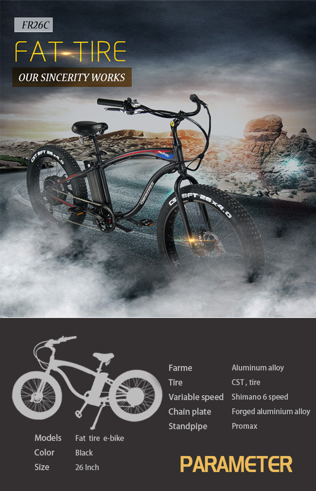 FR26C --CNEBIKES Fat Tire Electric Bike 1000W Snow E-Bike Beach Cruiser 48 volt Men Women Off Road Mountain e-Bike Pedal Assist, Optional capacity Lithium Battery power .