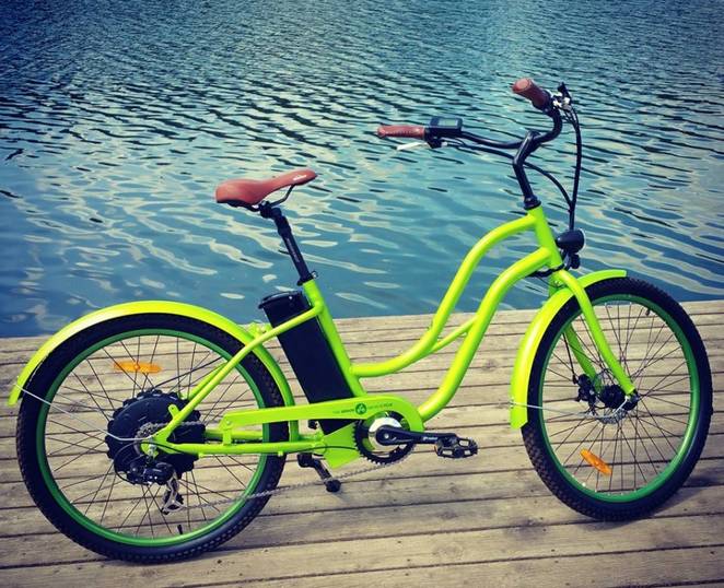 A 20" folding e-bike can be cycled just like any other e-bike, with a 350W rear hub motor for pedal-assist or throttle-based electric riding, a removable 36V 10 Ah lithium-ion battery, a top speed of 20 mph, and a range of 20-30 miles per charge, but they also come with a heavy duty stand that allows the bikes to be used as pedal-powered generators. These bikes can produce anywhere between 30 and 100 watts, depending on the rider, which can go directly back into the home via a standard wall outlet. Granted, this isn't nearly enough power to take your home off of the grid, by any means, but it is a way to cleanly charge or offset the electricity of a number of small electronics devices.
