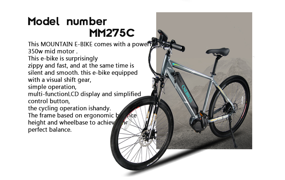 Brief Introduction: MM275B , Mountain ebike also it is a City ebike . with Bafang max drive motor ,so it will assist you pedal directly. It is also connected directly to the bike's chain set. This strategic motor placement will allow the motor to run in its optimum RPM range when the rider utilizes the bike's gearing system. When the rider shifts up in gears, the motor will ride in high gear to re...
